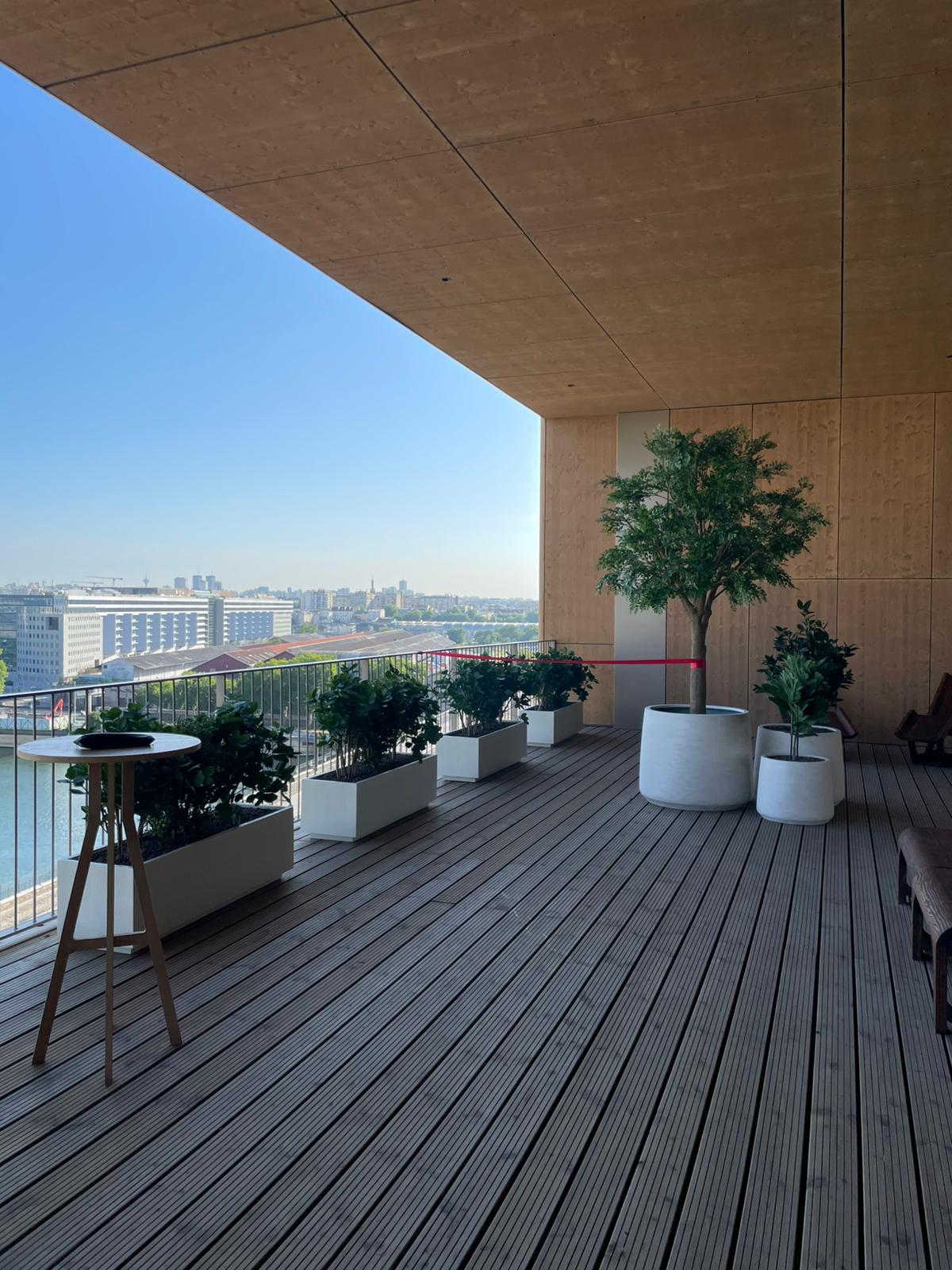 The tower, owned by Gecina and located in the Paris Rive Gauche development zone, spans 8,935m² and includes a commercial ground floor, 132 apartments, and extensive communal amenities such as outdoor walkways, bicycle and vehicle parking, and shared terraces.