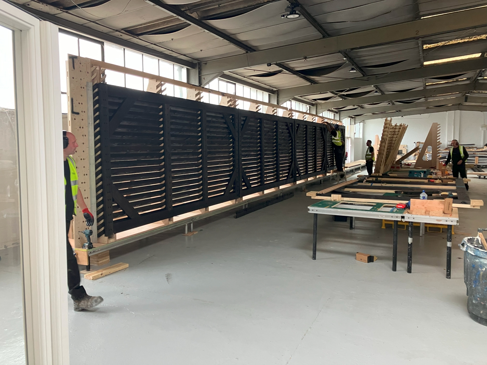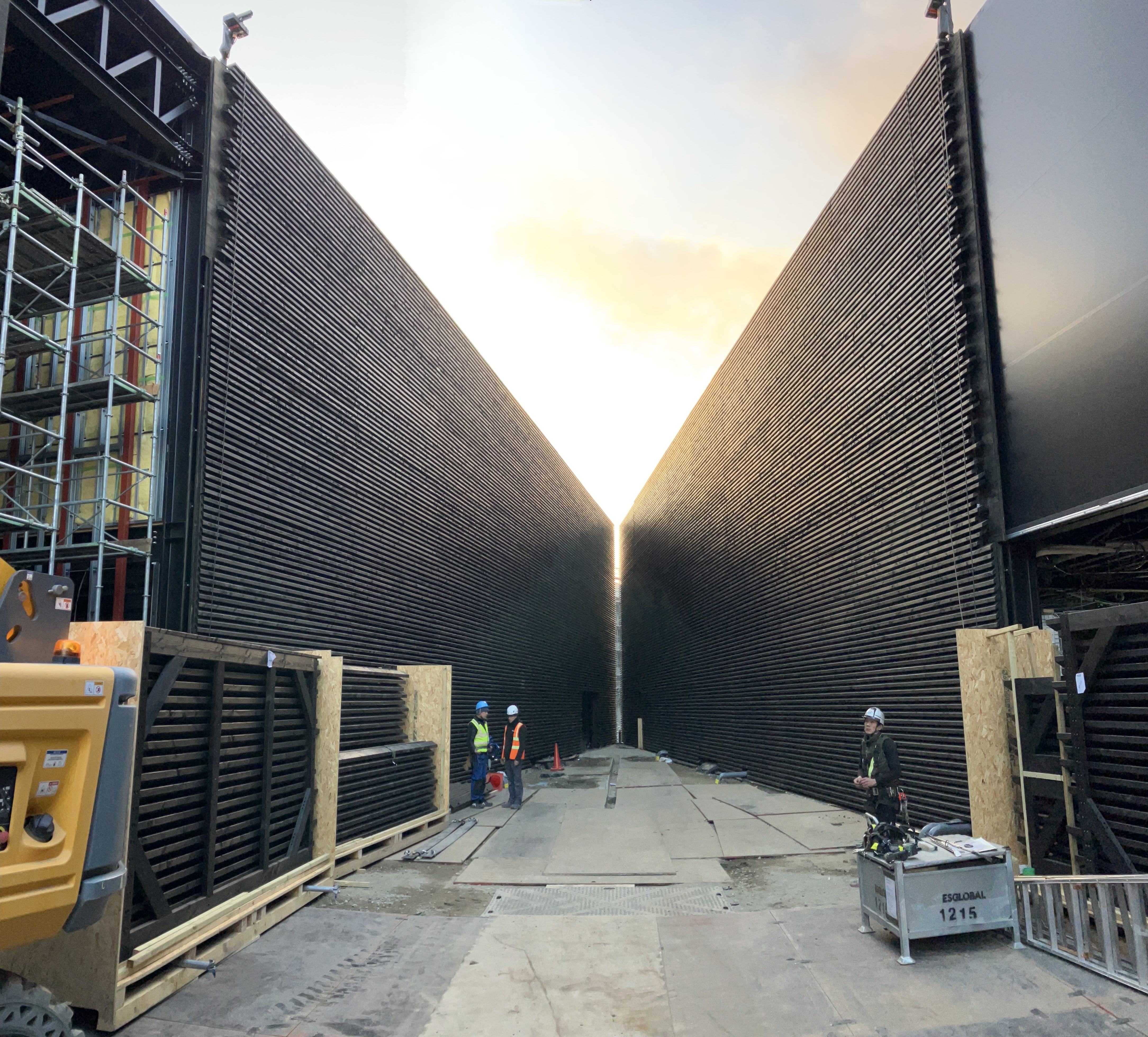 The pavilion’s timber façade uses PEFC-certified wood from leading French sawmiller and product specialist Piveteaubois, that supplied ES GLOBAL with 295m³ of solid, kiln dried, planed C24 Douglas fir components, all machined to ES GLOBAL’s 3D models.