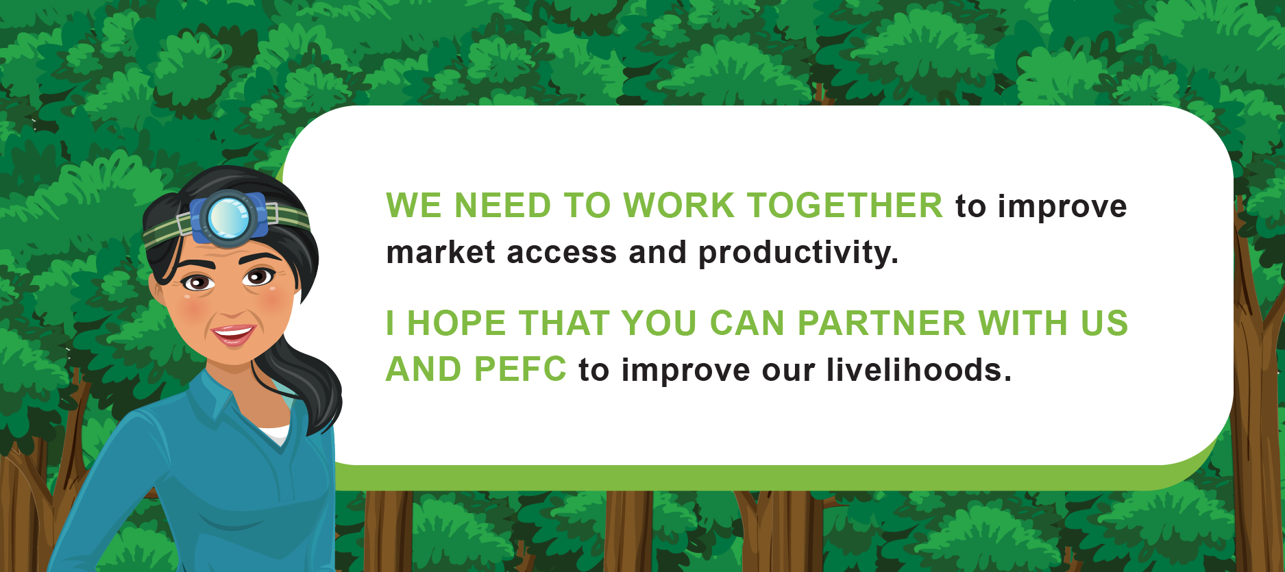 Many smallholders pursue certification together, through our group certification mechanism. This helps reduce costs and allows for the sharing of roles and responsibilities to achieve the common goal of PEFC certification.