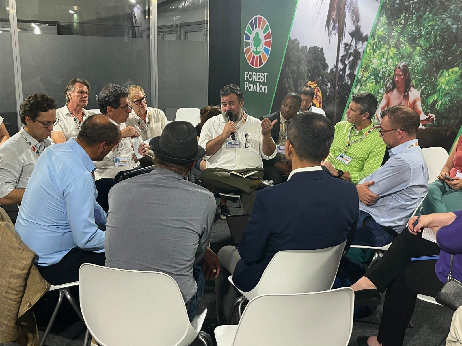 At the Forest Pavilion, PEFC International and FAO, on behalf of the Sustainable Wood for a Sustainable World (SW4SW) initiative, co-hosted a fishbowl discussion exploring how timber buildings can support climate mitigation, restoration efforts, and sustainable housing.