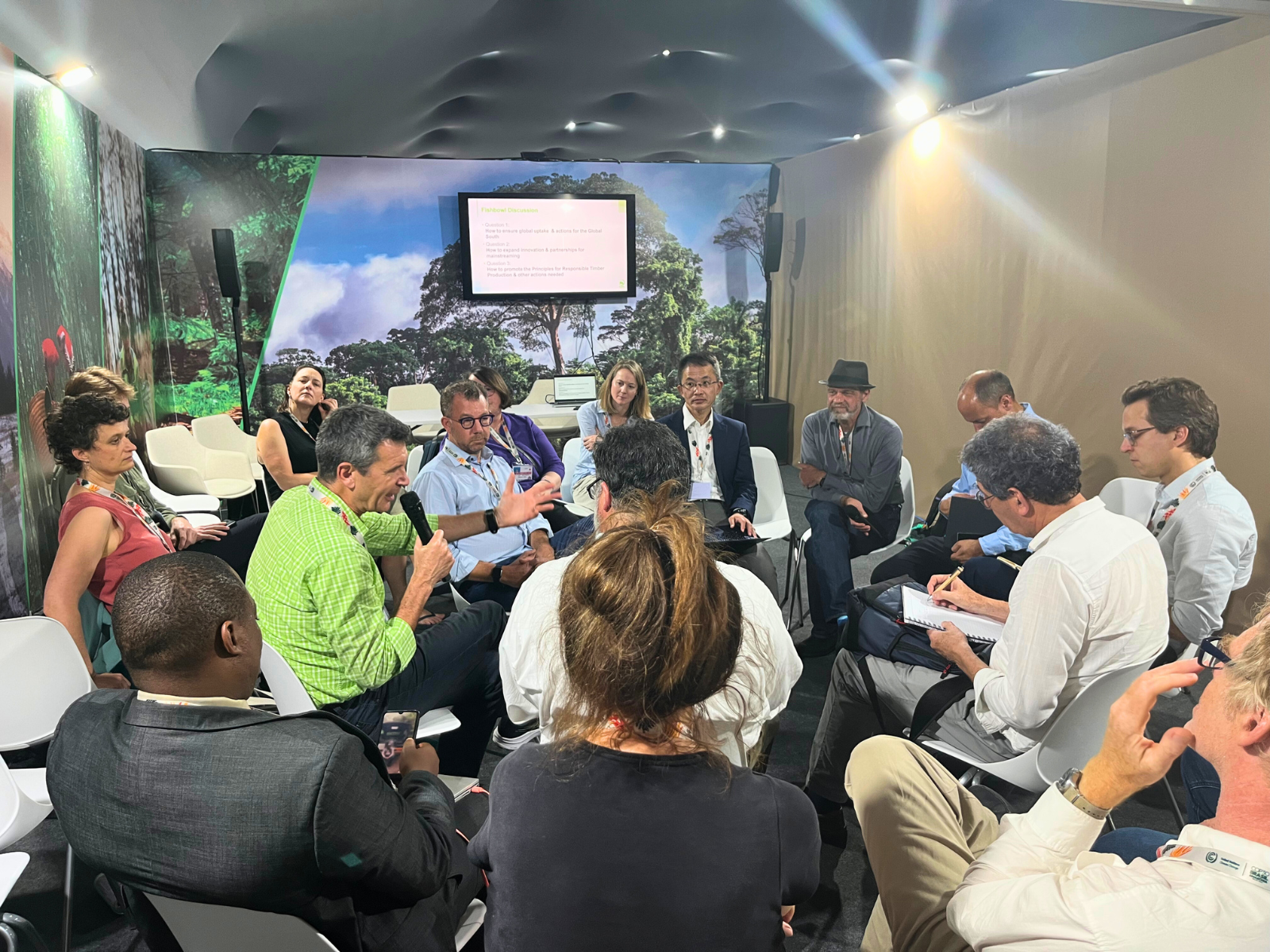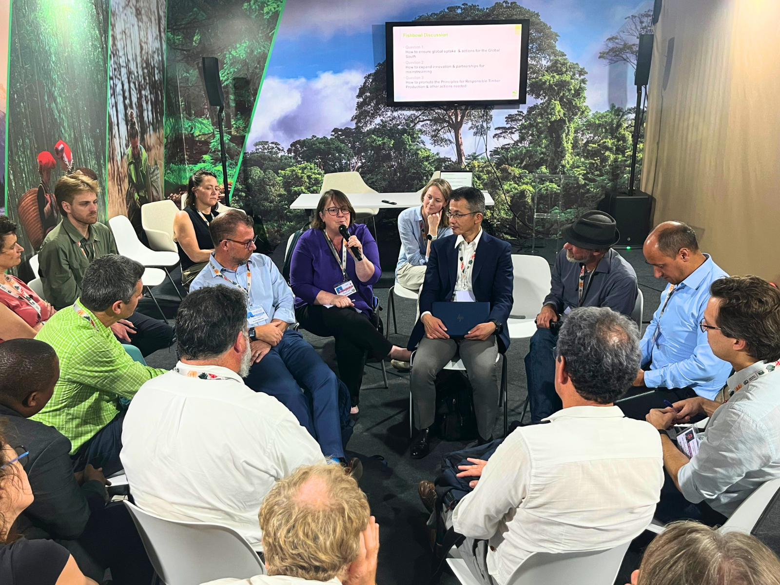 At the Forest Pavilion, PEFC International and FAO, on behalf of the SW4SW initiative, co-hosted a fishbowl discussion exploring how timber buildings can support climate mitigation, restoration efforts, and sustainable housing.